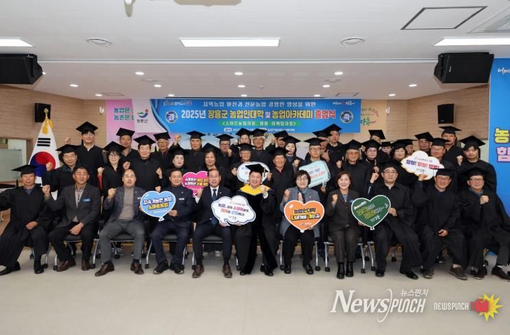 뉴스펀치 김길룡 기자 | 장흥군은 10일 2025년도 제19회 장흥군 농업인대학·농업아카데미 졸업식을 관계자 등 60여명이 참석한 가운데 농업기술센터에서 성황리 개최했다.