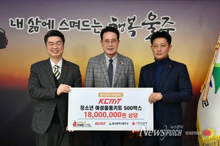 뉴스펀치 임정용 기자 | 울주군 서생면 소재 케이씨엠티(대표 김준영)가 연말을 맞아 20일 울주군에 1천800만원 상당의 청소년 대상 여성용품키트 500박스를 기부했다.