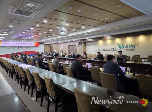 뉴스펀치 김길룡 기자 | 원주시 건강도시 조성 5개년 기본계획 수립 추진을 위한 최종보고회가 지난 11일 시청에서 열렸다. 보고회에는 김문기 부시장을 비롯한 관계 공무원 30여 명이 참석했다.