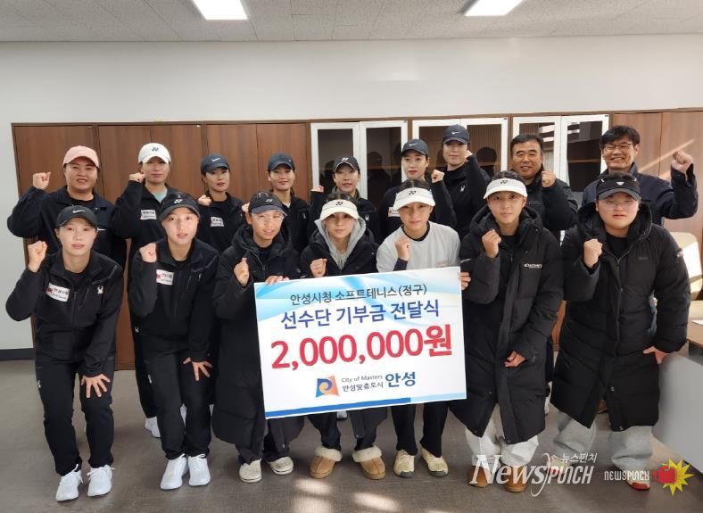 뉴스펀치 김길룡 기자 | 안성시청 소프트테니스 선수단이 올해 겨울에도 지역사회에 따뜻한 나눔을 이어갔다. 선수단은 총 600만 원의 기부금을 전달하며 지역 인재 및 소프트테니스 후배 선수들을 지원했다.
