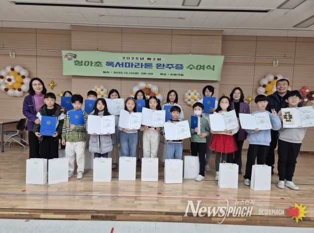 뉴스펀치 김길룡 기자 | 청아초등학교(교장 김삼순)는 지난 5월부터 운영해 온 ‘독서 마라톤’ 프로그램을 성공적으로 마무리하고, 완주 학생 16명을 대상으로 완주증 수여식을 개최했다고 밝혔다.