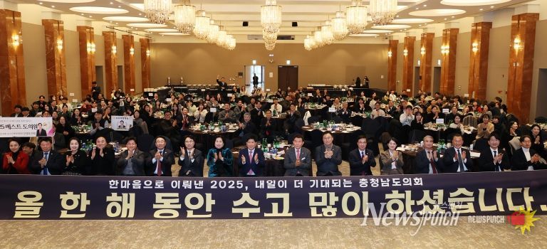 뉴스펀치 김길룡 기자 | 충남도의회는 15일 예산 스플라스 리솜 그랜드홀에서 도의원과 사무처 직원, 도지사, 교육감 등 220여 명이 참석한 가운데 ‘2025년 한마음 송년 워크숍’을 개최했다.