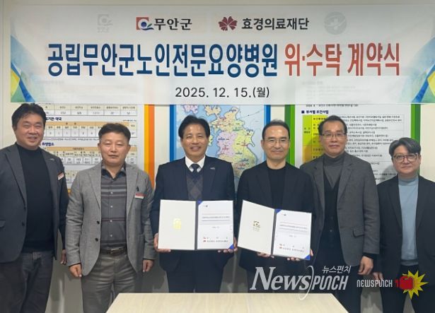 뉴스펀치 김길룡 기자 | 전남 무안군은 15일 의료법인 효경의료재단과 공립무안군노인전문요양병원의 민간 위·수탁 운영 계약을 체결했다.