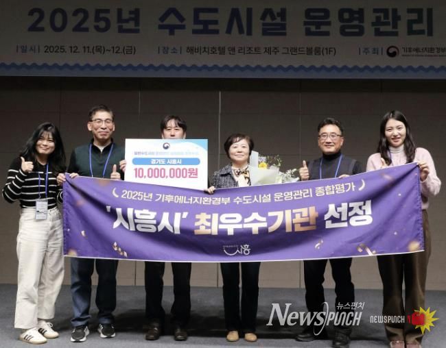 뉴스펀치 김길룡 기자 | 시흥시는 기후에너지환경부가 추진한 ‘2025년 일반수도사업 운영·관리 실태평가’에서 ‘전국 최우수기관’에 선정됐다고 16일 밝혔다.