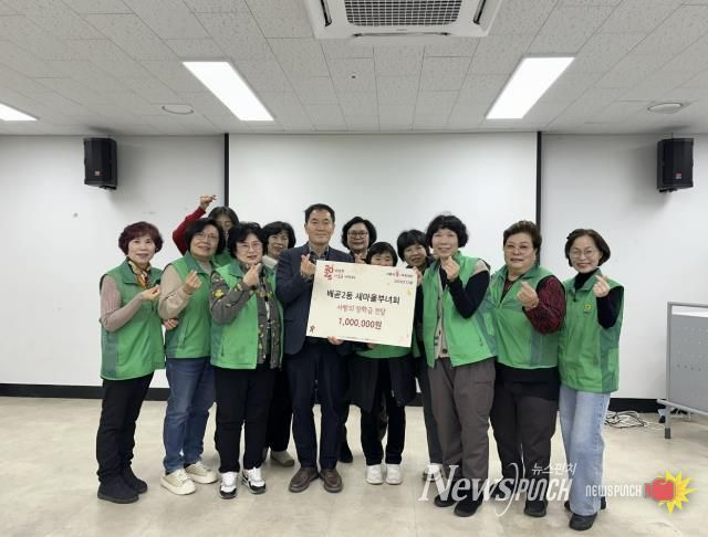 뉴스펀치 김길룡 기자 | 시흥시 배곧2동 새마을부녀회는 지난 12월 15일 관내 취약계층 학생을 위해 장학금 100만 원을 시흥시1퍼센트복지재단에 지정 후원했다.