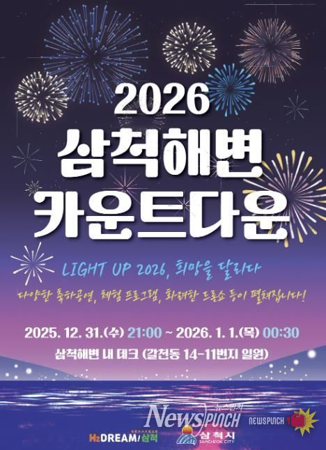 뉴스펀치 김길룡 기자 | 삼척시는 2025년의 마지막 밤과 2026년 새해 첫 아침을 삼척에서 맞이하려는 시민과 관광객이 함께 즐길 수 있는 다채로운 행사를 마련한다고 밝혔다.