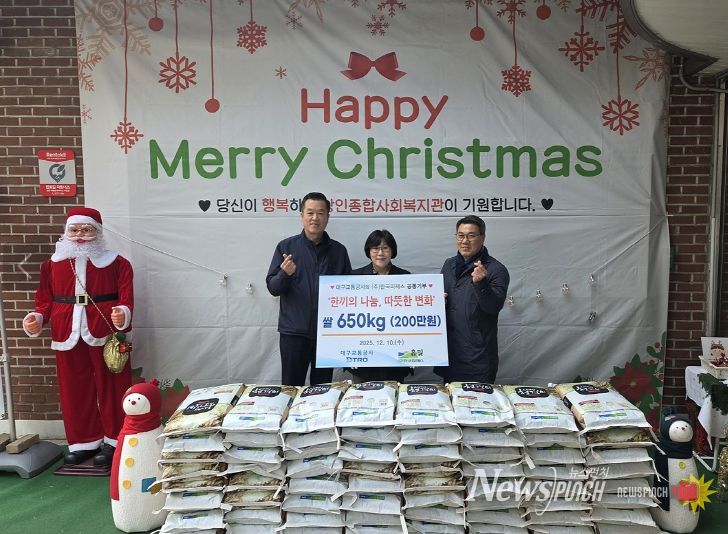 뉴스펀치 조평훈 기자 | 대구교통공사는 ㈜한국피제스와 공동으로 지난 12월 10일, 달서구에 위치한 상인종합복지관에서 지역 결식아동과 소외계층을 위한 쌀 650kg를 전달했다.