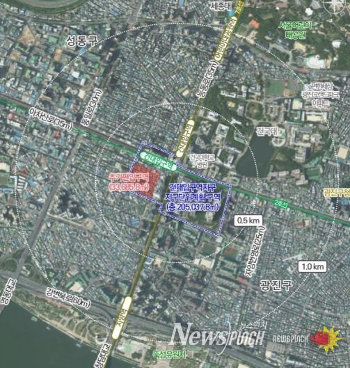 뉴스펀치 김완규 기자 | 광진구는 지난 12월 10일 서울시 도시·건축공동위원회 심의에서 ‘건대입구역지구 지구단위계획 결정(안)’이 수정가결됐다고 밝혔다. 이에 따라 건대입구역 일대를 청년·지식·문화가 어우러진 상업·업무 및 청년문화 중심지로 재편하는 사업이 본격화된다.