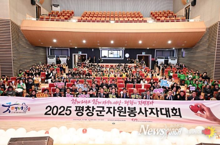 뉴스펀치 김길룡 기자 | 평창군자원봉사센터는 16일 2025년 한 해 지역 곳곳에서 따뜻한 나눔을 실천한 자원봉사자들의 공로를 기리고, 자원봉사 문화 확산을 도모하기 위해‘2025 평창군 자원봉사자 대회’를 개최했다.