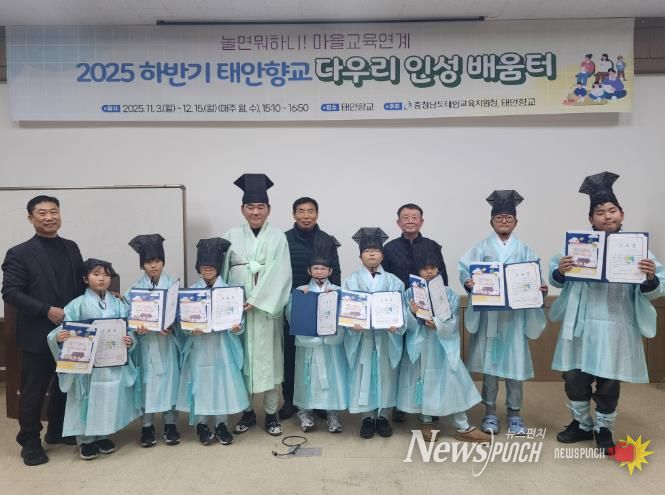 뉴스펀치 김길룡 기자 | 충청남도태안교육지원청은 12월 15일 태안향교에서 2025 하반기 마을교육연계 프로그램인 ‘태안향교 다우리 인성배움터’ 종강식을 개최했다.