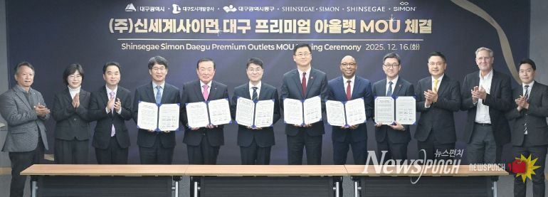 뉴스펀치 조평훈 기자 | 대구 동구청은 지난 16일 대구시 산격청사 대회의실에서 ‘신세계사이먼 프리미엄 아울렛’ 조성을 위한 업무협약(MOU)을 체결했다.