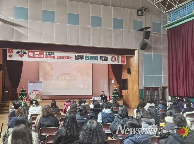 뉴스펀치 김길룡 기자 | 인천남부교육지원청은 16일 인주중학교에서 관내 초·중·고 교사 100여 명을 대상으로 소설 『아버지의 해방일지』 저자 정지아 작가와 함께하는 교사 공감 프로그램을 운영했다.