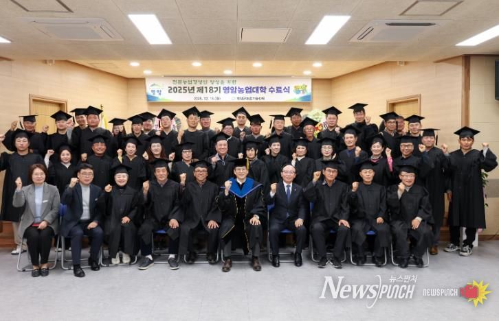 뉴스펀치 김길룡 기자 | 영암군이 15일 영암군농업기술센터에서 ‘2025년 영암농업대학 수료식’을 열고, 제18기 무화과·한우 과정 수료생 49명을 배출했다.