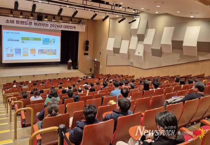 뉴스펀치 김길룡 기자 | 김천시립 율곡도서관은 개관 3주년을 맞이하여 12월 9일 김용섭 작가 강연에 이어 지난 12월 16일 율곡홀에서 한다혜 박사를 초청해 '소비 트렌드로 바라보는 2026년 대한민국' 강연을 성황리에 개최했다.