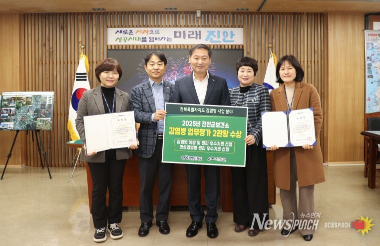 뉴스펀치 정홍균 기자 | 진안군은 최근 전북특별자치도에서 실시한 2025년 감염병 관리사업 평가에서 ‘감염병 예방 및 관리’, ‘만성감염병 관리’ 2개 부문에서 우수기관 표창을 동시에 수상하는 영예를 안았다.