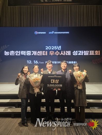 뉴스펀치 정홍균 기자 | 진안군은 지난 16일, 2025년도 농촌인력중개센터(농촌형·공공형 계절근로) 운영 우수 사례 성과발표회에서 공공형 계절근로자 운영 주체인 진안군 조공법인(대표 최종진)이 대상을 수상했다고 밝혔다.