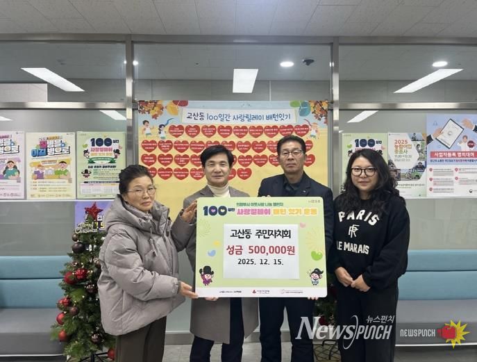 뉴스펀치 김길룡 기자 | 의정부시 고산동주민센터는 12월 15일 고산동 주민자치회가 저소득층을 위한 성금 50만 원을 전달하며 ‘100일간 사랑릴레이 배턴 잇기’에 참여했다고 밝혔다.