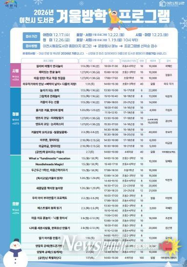 뉴스펀치 김길룡 기자 | 이천시는 2026년 1월부터 2월까지 겨울방학 기간에 어린이를 대상으로 한 다양한 독서문화 프로그램을 운영한다고 밝혔다.