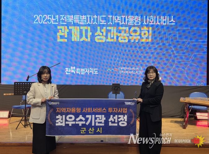 뉴스펀치 정홍균 기자 | 군산시가 17일 전북도청에서 열린 전북특별자치도 주관 ‘2025년 지역자율형 사회서비스 투자사업 시·군 성과평가’에서 최우수상을 수상했다.