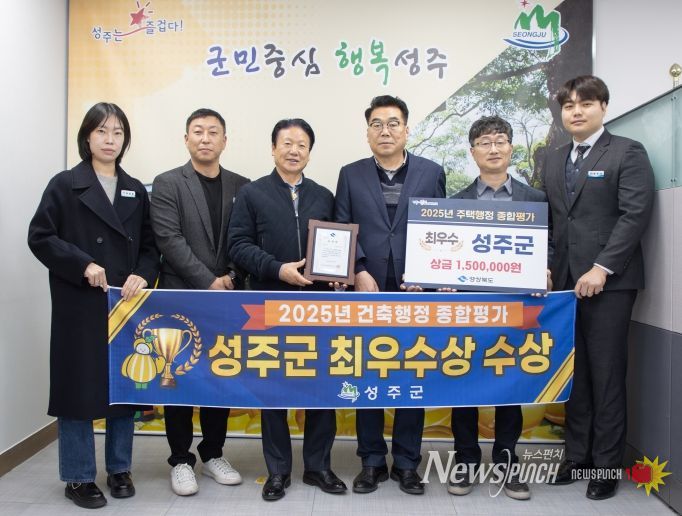 뉴스펀치 김길룡 기자 | 성주군이 경상북도 2025년도 경상북도 주택행정종합평가에서 최우수상을 수상하며 주택‧건축행정 전반에서 우수한 행정역량을 다시 한번 입증했다.