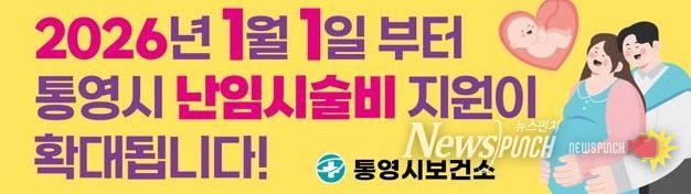뉴스펀치 김길룡 기자 | 통영시는 내년 1월부터 아이 갖기를 희망하는 난임부부에게 정부지원금 외 발생하는 본인부담금 시술비를 확대 지원할 계획이라고 밝혔다.