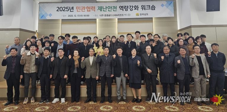 뉴스펀치 김길룡 기자 | 전라남도는 17일 나주 중흥골드스파&리조트에서 2025 민관협력 재난안전 역량강화 워크숍을 열고 지역 대규모 재난 발생시 신속한 대응을 위한 민관협력을 더욱 강화키로 결의했다고 밝혔다.