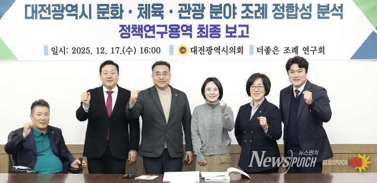 뉴스펀치 김길룡 기자 | 대전시의회 의원연구회 ‘더 좋은 조례 연구회’(회장 김영삼 의원)는 17일 시의회 공감실에서 '대전광역시 문화·체육·관광 분야 조례 정합성 분석 연구' 최종보고회를 개최했다.