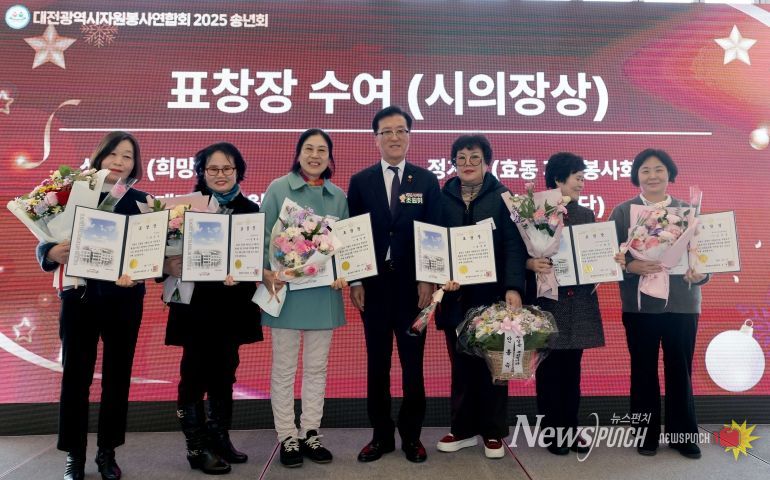 뉴스펀치 김길룡 기자 | 대전시의회 조원휘 의장은 17일 라도무스아트센터(유성구 원신흥동)에서 개최된 2025년 市 자원봉사연합회 송년회에 참석해 지역 곳곳을 지켜온 자원봉사자들에게 깊은 감사의 마음을 전했다.