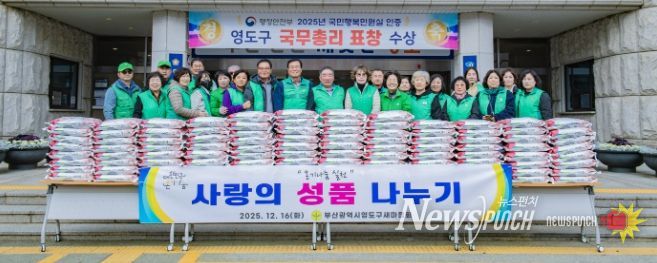 뉴스펀치 김길룡 기자 | 부산광역시 영도구 새마을회(회장 김철호)는 연말연시를 맞아 지역 내 소외되고 도움이 필요한 이웃들에게 따뜻한 격려와 온정을 전하고자, 지난 12월 16일 영도구청 광장에서 ‘따뜻한 겨울나기 사랑의 성품 나누기 행사’를 개최했다.