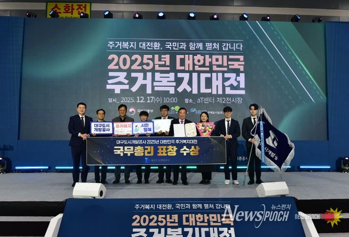 뉴스펀치 조평훈 기자 | 대구도시개발공사는 12월 17일 서울 양재AT센터에서 열린 ‘2025년 대한민국 주거복지대전’에서 주거복지 정책 추진 성과를 인정받아 국무총리표창을 수상했다.