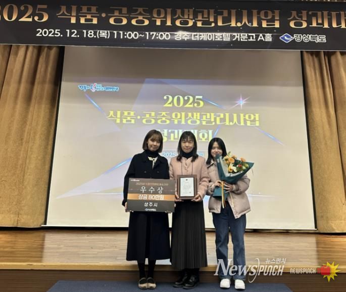 뉴스펀치 김길룡 기자 | 상주시는 12월 18일 더케이 호텔 경주에서 개최된 녩년 식품·공중위생관리사업 성과대회’에서 우수상을 수상했다. 이번 수상은 경상북도가 실시한 2025년도 식품안전관리 시군 평가에서 식품안전관리 우수사례, 식생활 환경 개선관리, 정책협조도 등 평가지표 14개 항목에 대한 평가를 거쳐 우수기관으로 선정된 데 따른 것이다.