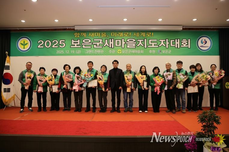 뉴스펀치 김길룡 기자 | 충북 보은군은 19일 그랜드컨벤션에서 ‘2025년 보은군 새마을지도자대회’를 개최하고 한 해 동안 지역사회 발전과 공동체 활성화에 헌신한 새마을지도자들의 노고를 격려했다.