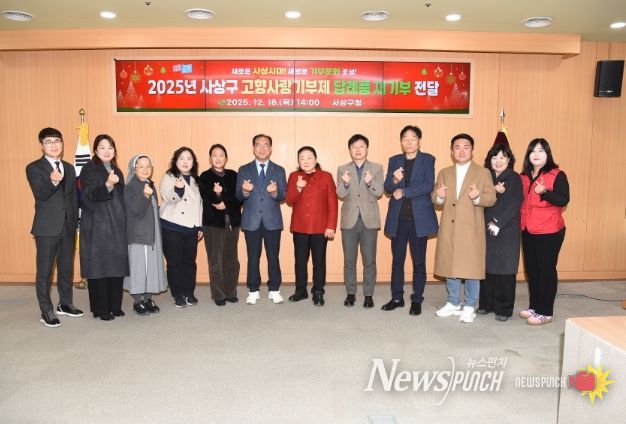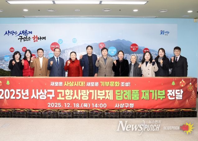 뉴스펀치 김길룡 기자 | 부산 사상구는 지난 18일 본관 3층에서‘2025년 고향사랑기부제 답례품 재기부 전달식’을 개최했다고 밝혔다.