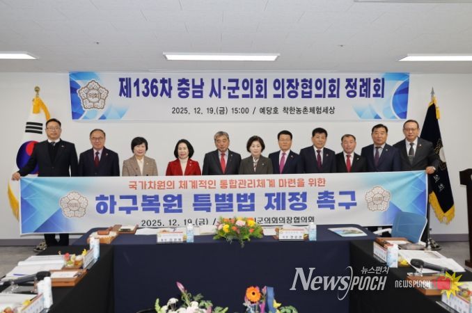 뉴스펀치 김길룡 기자 | 충청남도 시․군의회 의장협의회는 19일 예산군에서 제136차 정례회를 개최했다.