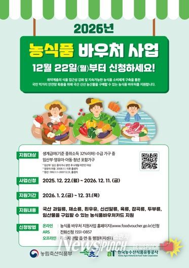 뉴스펀치 김길룡 기자 | 속초시가 2025년 12월 22일부터 2026년 농식품 바우처 지원사업 신청접수를 시작한다.