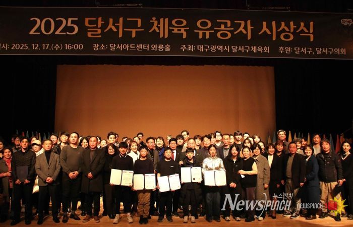 뉴스펀치 조평훈 기자 | 대구 달서구 달서구체육회는 지난 17일 달서아트센터에서 ‘2025 달서구 체육유공자 시상식’을 개최하고, 한 해 동안 달서구 체육 발전에 기여한 체육인들을 격려하는 뜻깊은 시간을 가졌다.