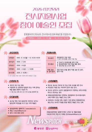 뉴스펀치 조평훈 기자 | (재)달성문화재단은 오는 22일부터 31일까지 ‘2026 참꽃갤러리 전시지원사업 참여예술인’을 모집한다.