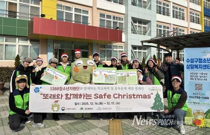 뉴스펀치 조평훈 기자 | 대구 수성구청소년상담복지센터는 수성구1388청소년지원단과 함께 지난 16일부터 17일까지 이틀간 지역사회 청소년의 안전한 생활과 건강한 성장을 돕기 위해 학교폭력 및 중독문제 예방 캠페인 ‘또래와 함께하는 세이프 크리스마스(Safe Christmas)’를 진행했다.