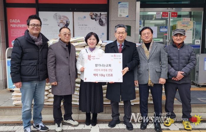 뉴스펀치 김길룡 기자 | 시흥시 계수동에 있는 향기나는교회가 지난 12월 19일 대야동 마을자치과에 백미 10kg 135포를 전달하며 지역 내 취약계층을 위한 따뜻한 나눔을 실천했다.