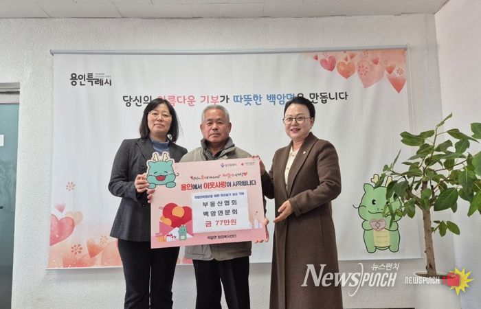 처인구 백암면 행정복지센터에는 지난 10일 공인중개사협회 백암면분회가 이웃돕기 성금 77만원을 기탁했고, 15일에는 ㈜오엠코리아가 300만원을 기탁했다.