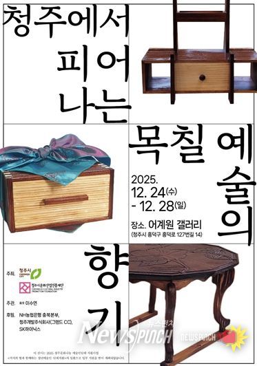 뉴스펀치 김길룡 기자 | 청주시문화산업진흥재단은 오는 24일 운천동에 위치한 어계원 갤러리에서 청년 작가 이수연의 개인전 ‘청주에서 피어나는 목칠 예술의 향기’가 개막한다고 밝혔다.