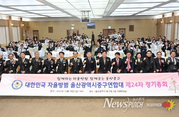 뉴스펀치 김길룡 기자 | 울산중구자율방범연합대(대장 이종혁)가 12월 19일 오후 7시 중구청 대회의실에서 제24회 정기총회를 개최했다.