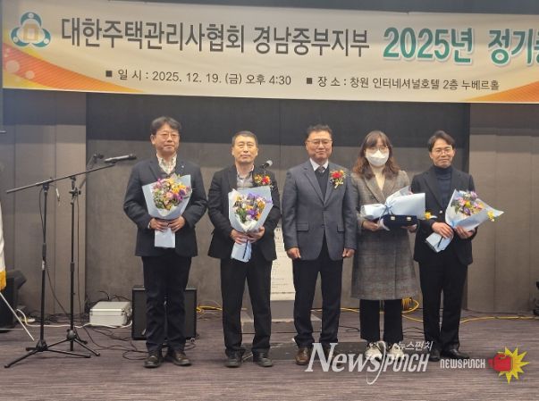 뉴스펀치 김길룡 기자 | 창원특례시는 19일 창원 인터내셔널호텔(성산구 중앙동)에서 열린 대한주택관리사협회 경남중부지부 정기총회에서, 공동주택 관리 신뢰도 향상에 기여한 공로를 인정받아 대한주택관리사협회 경남중부지부로부터 감사패를 전달받았다고 밝혔다.