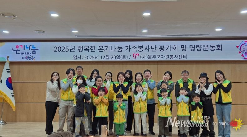 뉴스펀치 김길룡 기자 | (사)울주군자원봉사센터(센터장 손영순)가 20일 울주군청 문수홀에서 ‘행복한 온기나눔 가족봉사단 평가회 및 명랑운동회’를 개최했다.