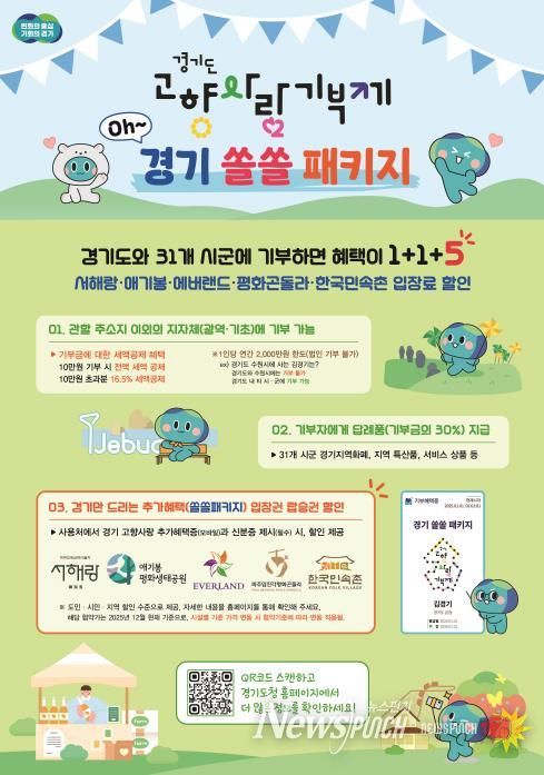 도는 기부 참여를 독려하고 관광 소비를 지역으로 이끌기 위해 세액공제와 답례품에 더해 경기도만의 추가 혜택을 담은 ‘고향사랑 쏠쏠패키지’를 기획했다.