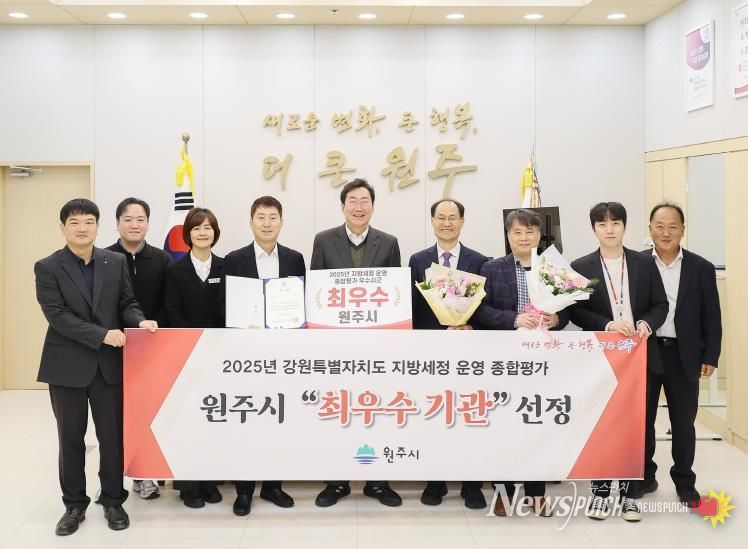 뉴스펀치 김길룡 기자 | 원주시는 강원특별자치도가 실시한 ‘2025년 지방세정 종합평가’에서 최우수기관으로 선정됐다. 이번 선정은 2017년 최우수기관 선정 이후 8년 만의 쾌거다.