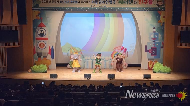 뉴스펀치 김길룡 기자 | 원주시는 아동의 권리에 대한 이해를 높이고 존중 문화를 확산하기 위해 지난 19일 치악예술관에서 유니세프 원주시후원회(회장 김효종)와 함께 아동권리교육 인형극 ‘피터팬과 친구들’ 공연을 진행했다.