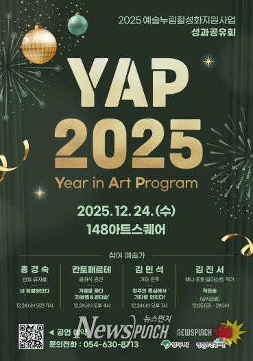 뉴스펀치 김길룡 기자 | (재)영주문화관광재단은 오는 12월 24일 148아트스퀘어에서 크리스마스 컨셉의 ‘2025 예술누림활성화 지원사업 성과공유회 'YAP 2025'’를 개최할 예정이다.
