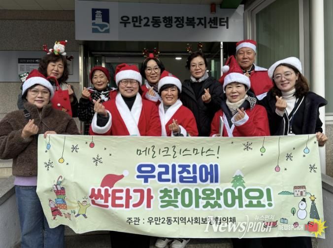 이번 행사는 복지사각지대에 놓인 아동 가구에 따뜻한 연말 분위기와 정서적 위안을 전하기 위해 마련됐으며, 우만2동의 ‘장미마을’ 이미지를 살려 빨간 산타 복장을 착용한 협의체 위원들은 아주대학교 인근 거리 등에서 복지사각지대 발굴 캠페인과 함께 크리스마스 홍보물을 배부하며 시민들의 관심을 모았다.