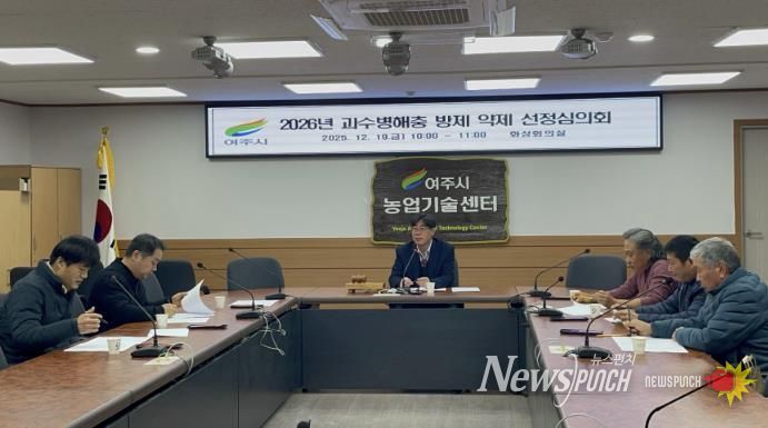 뉴스펀치 김길룡 기자 | 여주시는 12월 19일 여주시농업기술센터에서 2026년 과수 병해충(화상병, 돌발병해충) 예방을 위한 방제 약제 선정심의회를 개최했다.